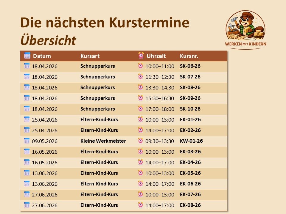 Werkkurse in Mannheim - hier haben Kinder ab 4 Jahren die Möglichkeit, mit echten Werkzeugen die Welt des Holzes zu entdecken. Schnupperkurse, Eltern-Kind-Kurse, Kurse für kleine Werkmeister und noch viel mehr - hier ist für jeden etwas dabei.